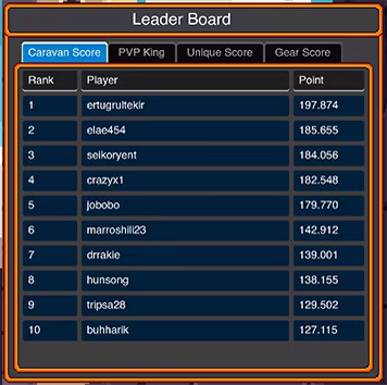 声望就是一切。与来自全球的商人竞争,在 4 个不同的排行榜类别中争夺排名。通过击败 Boss、运输商队、完成地牢挑战以及强化装备来提升名次。Boss、地牢和商队排行榜每周重置,而装备评分则永久有效。