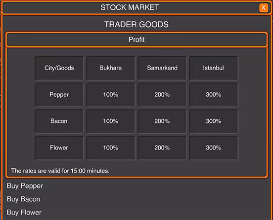 每座城市的物价都不同。低价买入,高价卖出;利用供需差获取利润。你对贸易理解得越深,你的财富增长得越快。如果你愿意,可以不购买而是自己寻找贸易商品。在开放世界中,你可以发现每座城市特有的贸易商品。通过收集这些商品,你无需花钱购买贸易物品。获得你的经济自由。