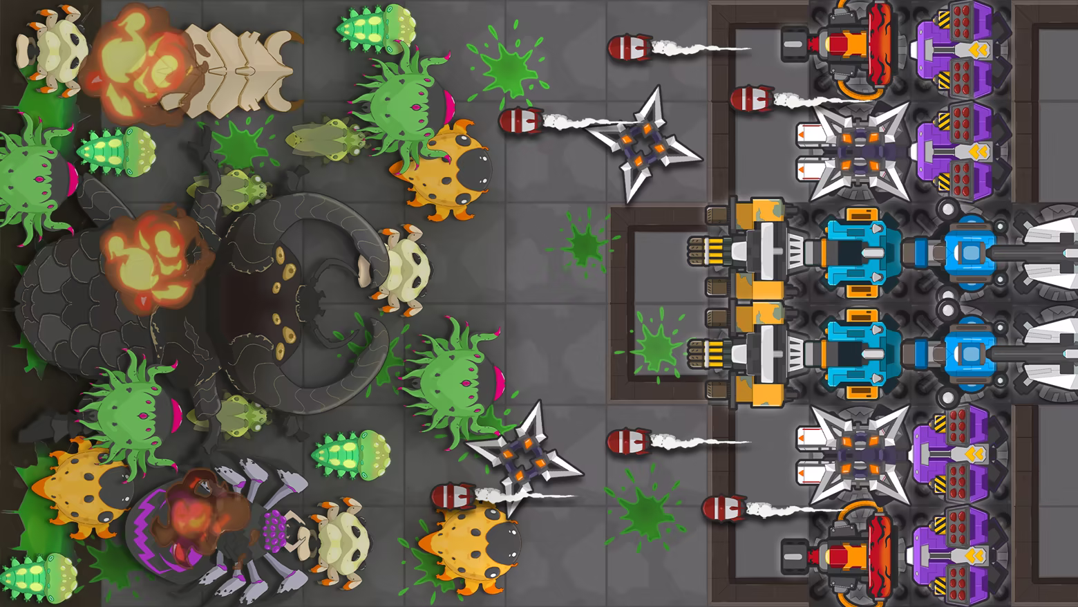 一共50波怪物侵袭,4个小boss,1个终局boss